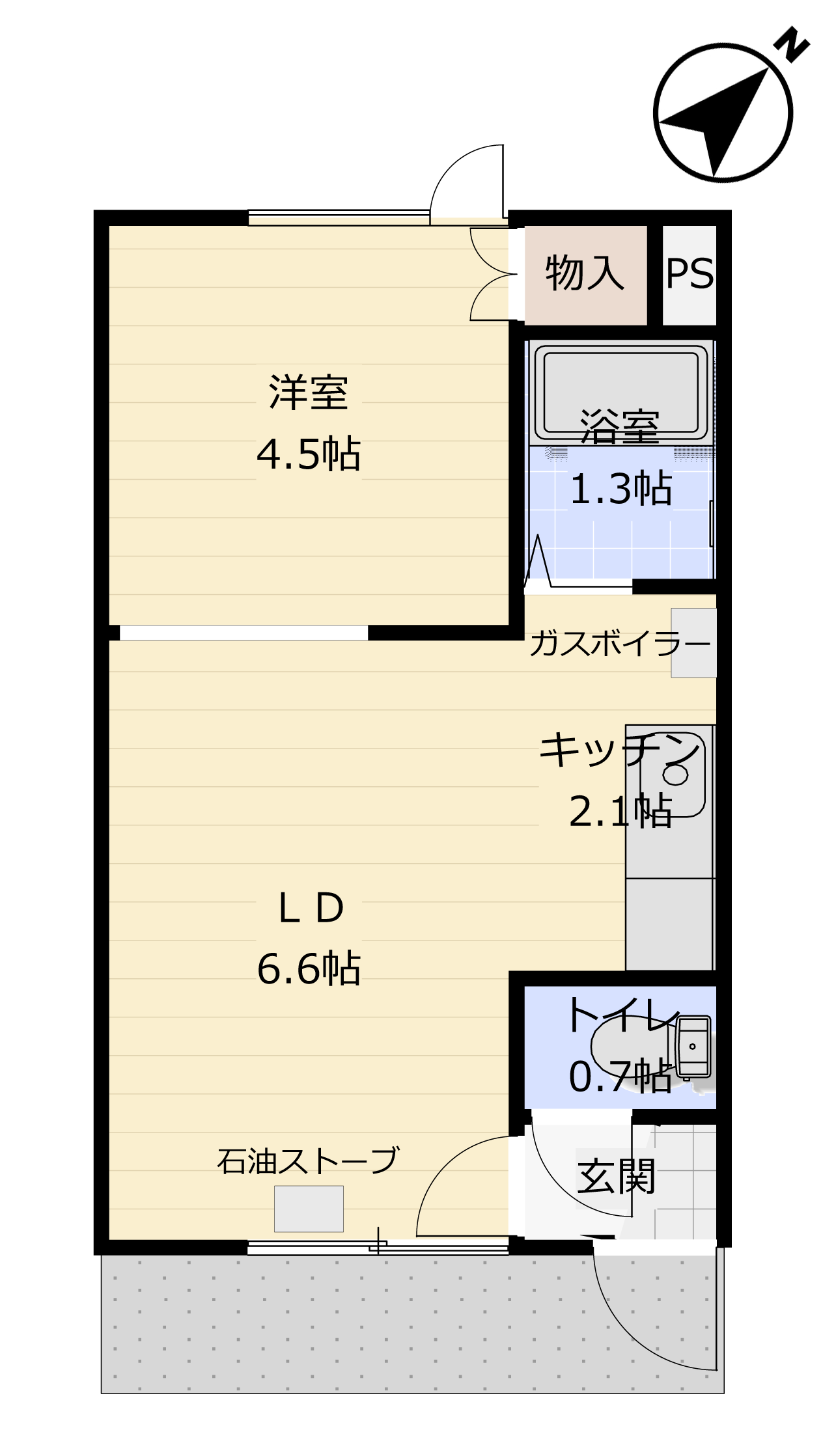 | 付 帯 設 備 | FFガスストーブ、照明器具、ガス給湯器 |