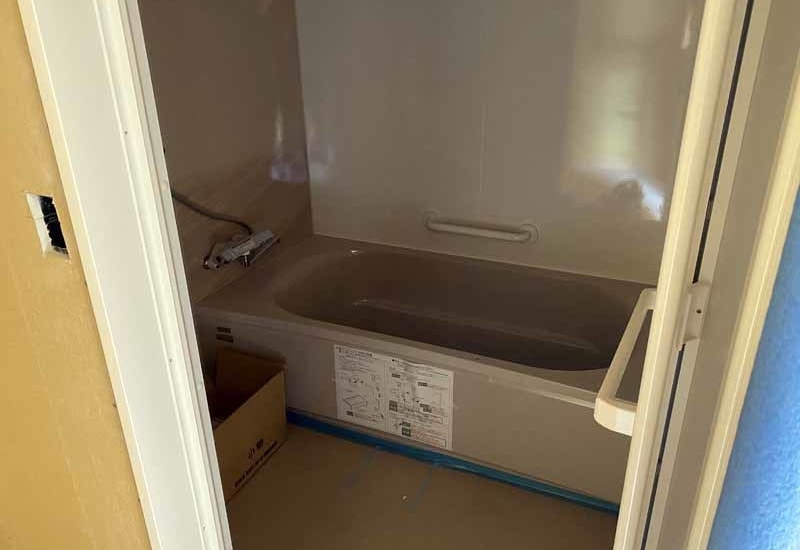 フルリフォーム中(外壁塗替え、外部階段取替え、ドア取り替え、内部クロス貼り替え、ボイラー入替え、キッチン取替え床、便器取替え、洗面化粧台設置)